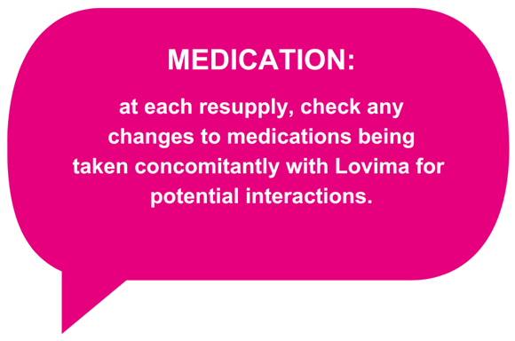 Some women asking for a supply of Lovima may have been using it previously and this is a repeat supply. At each request for a repeat supply, conduct a thorough follow-up consultation to ensure the woman is still suitable for Lovima, exclude pregnancy and ensure there have been no changes to the patient's health that impact the appropriateness of continued treatment.